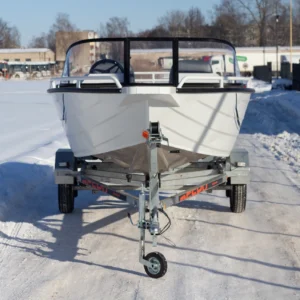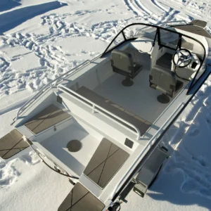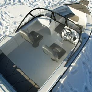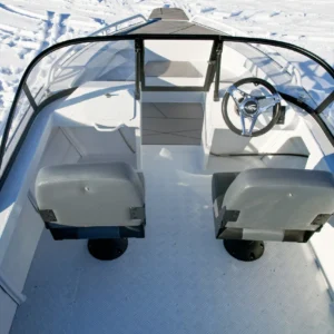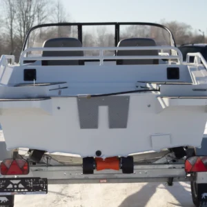Priekyje aliuminio platforma, kurioje lengvai pritvirtinsite inkaravimosi gervę ar GPS variklį.