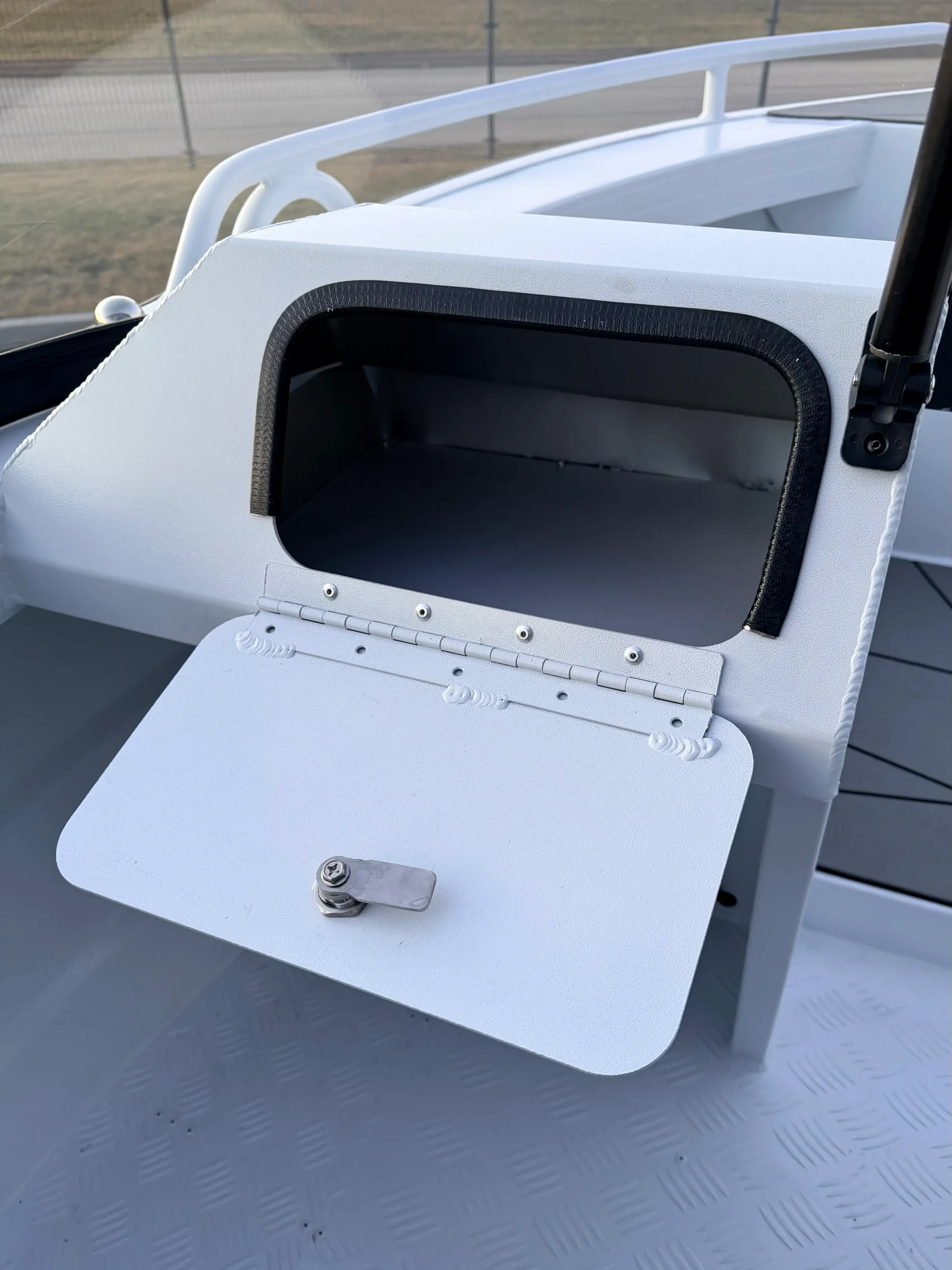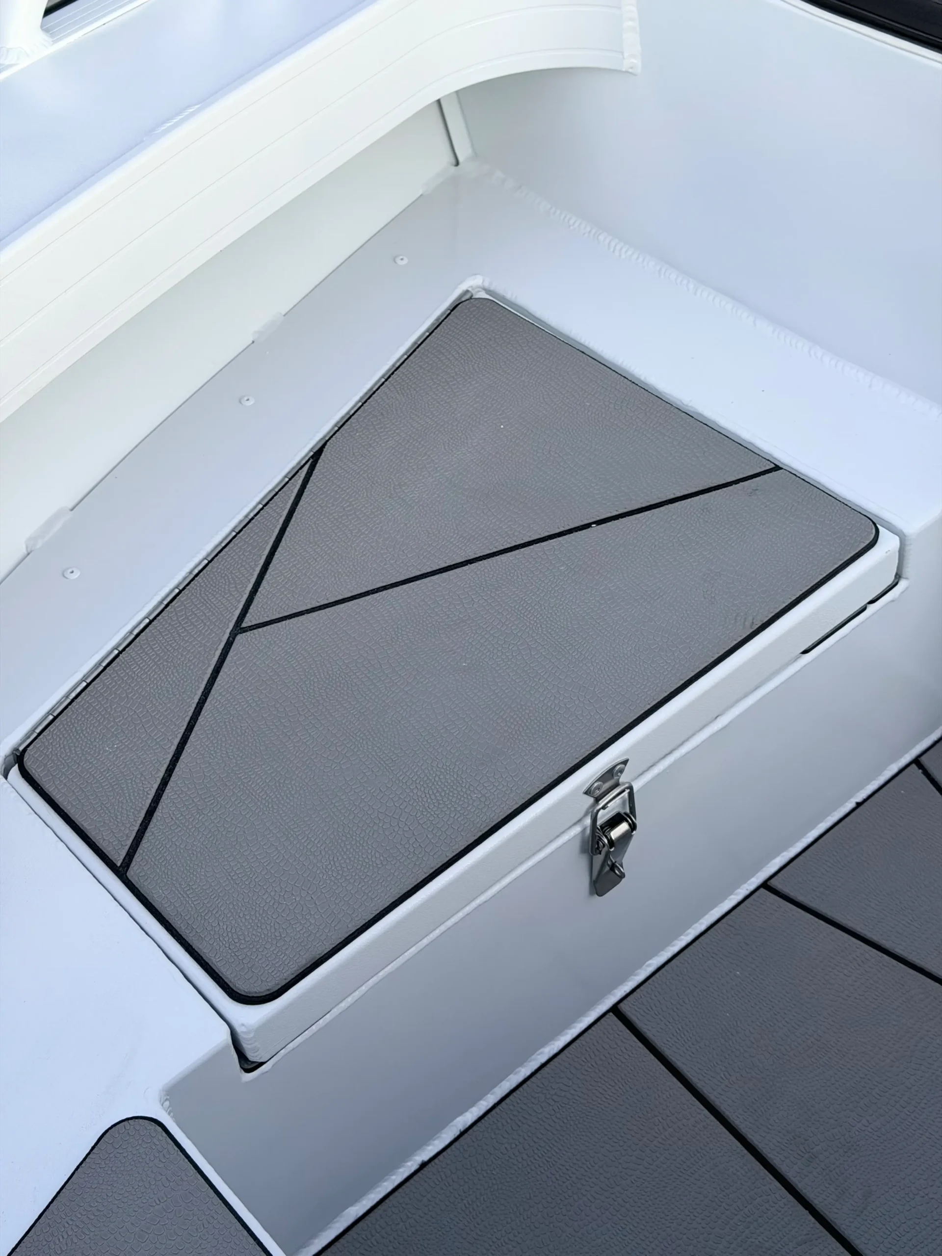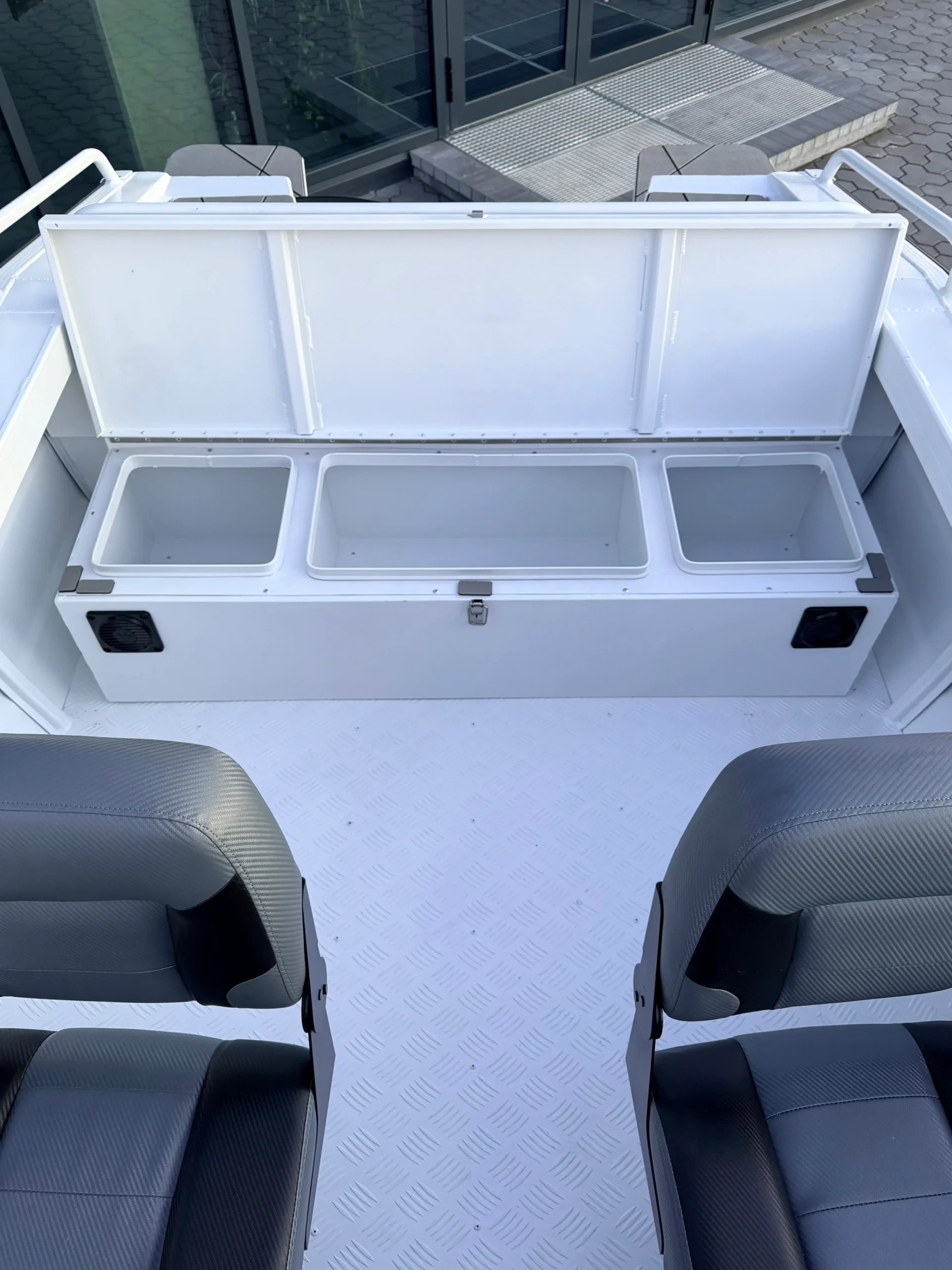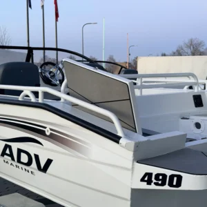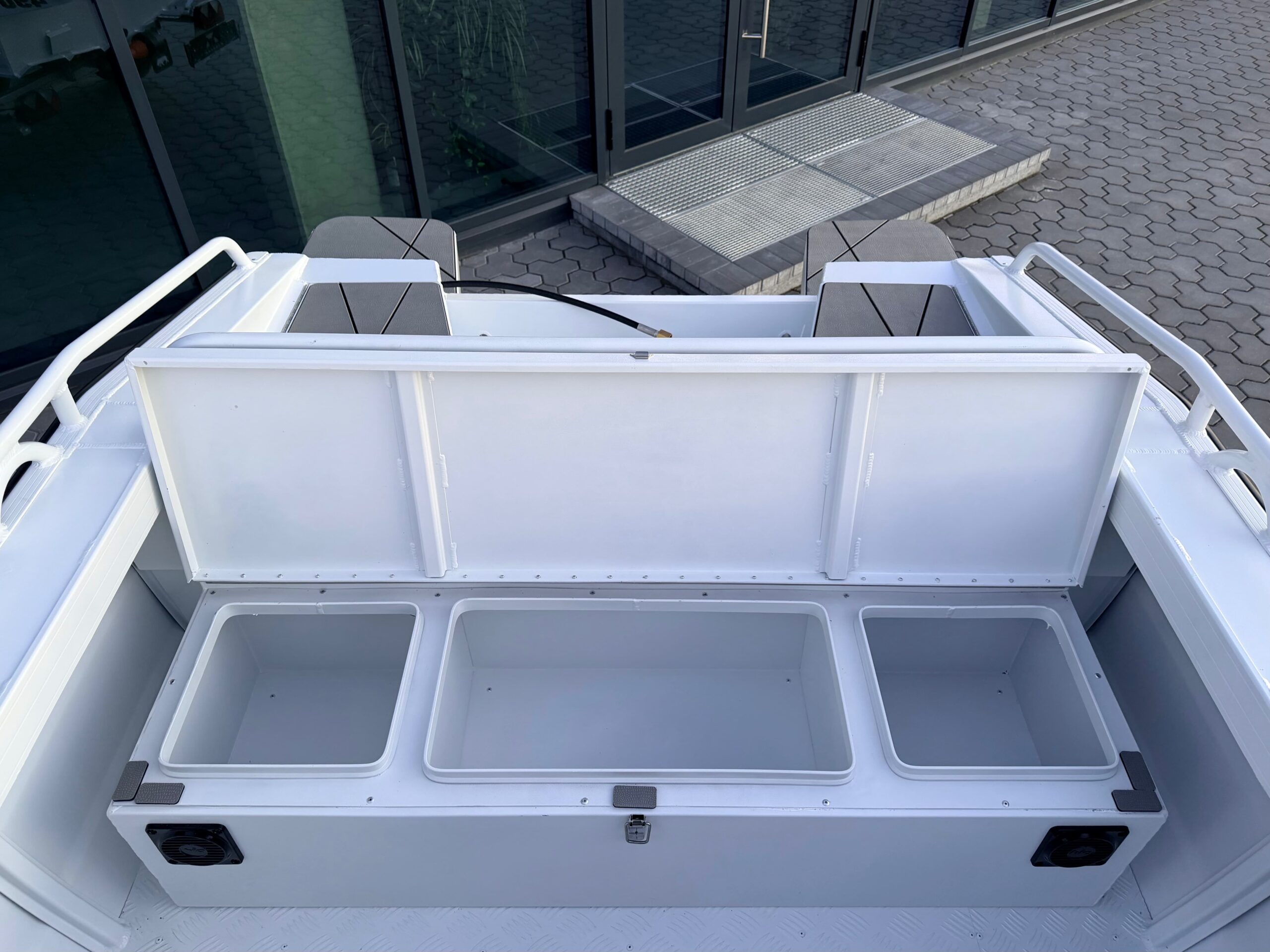 Priekyje aliuminio platforma, kurioje lengvai pritvirtinsite inkaravimosi gervę ar GPS variklį.
