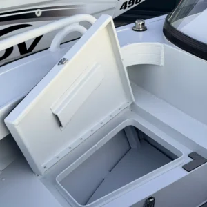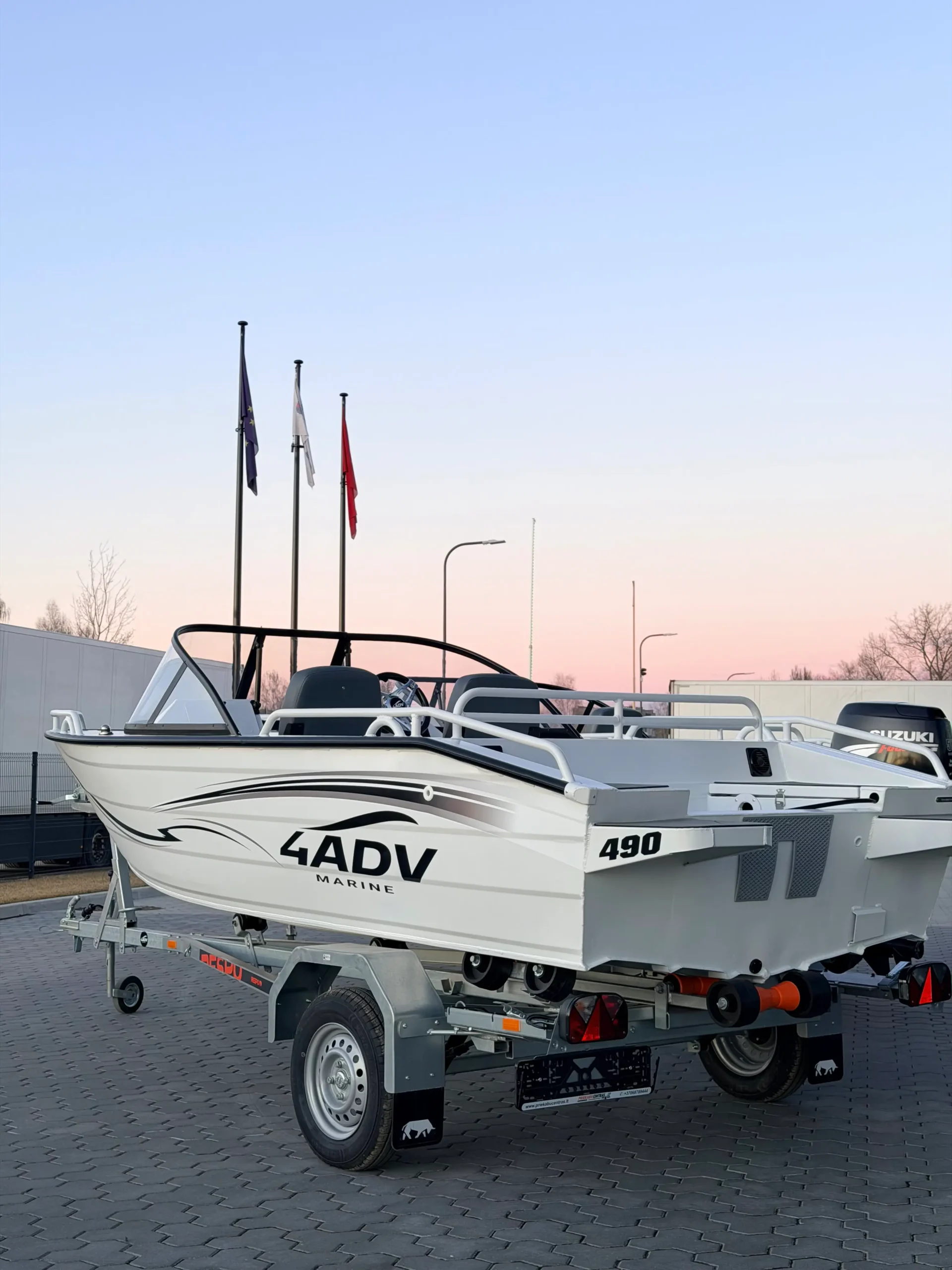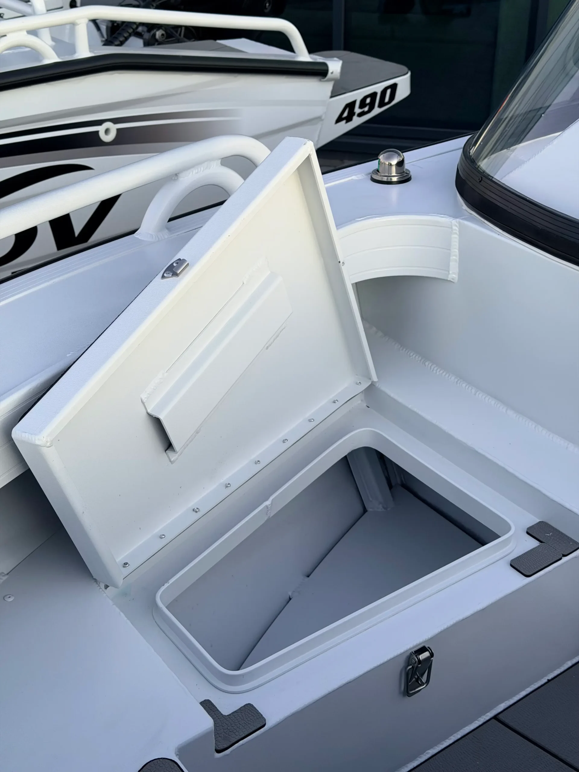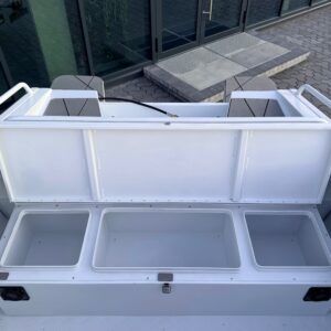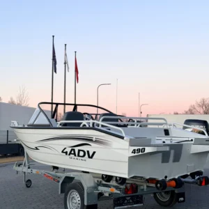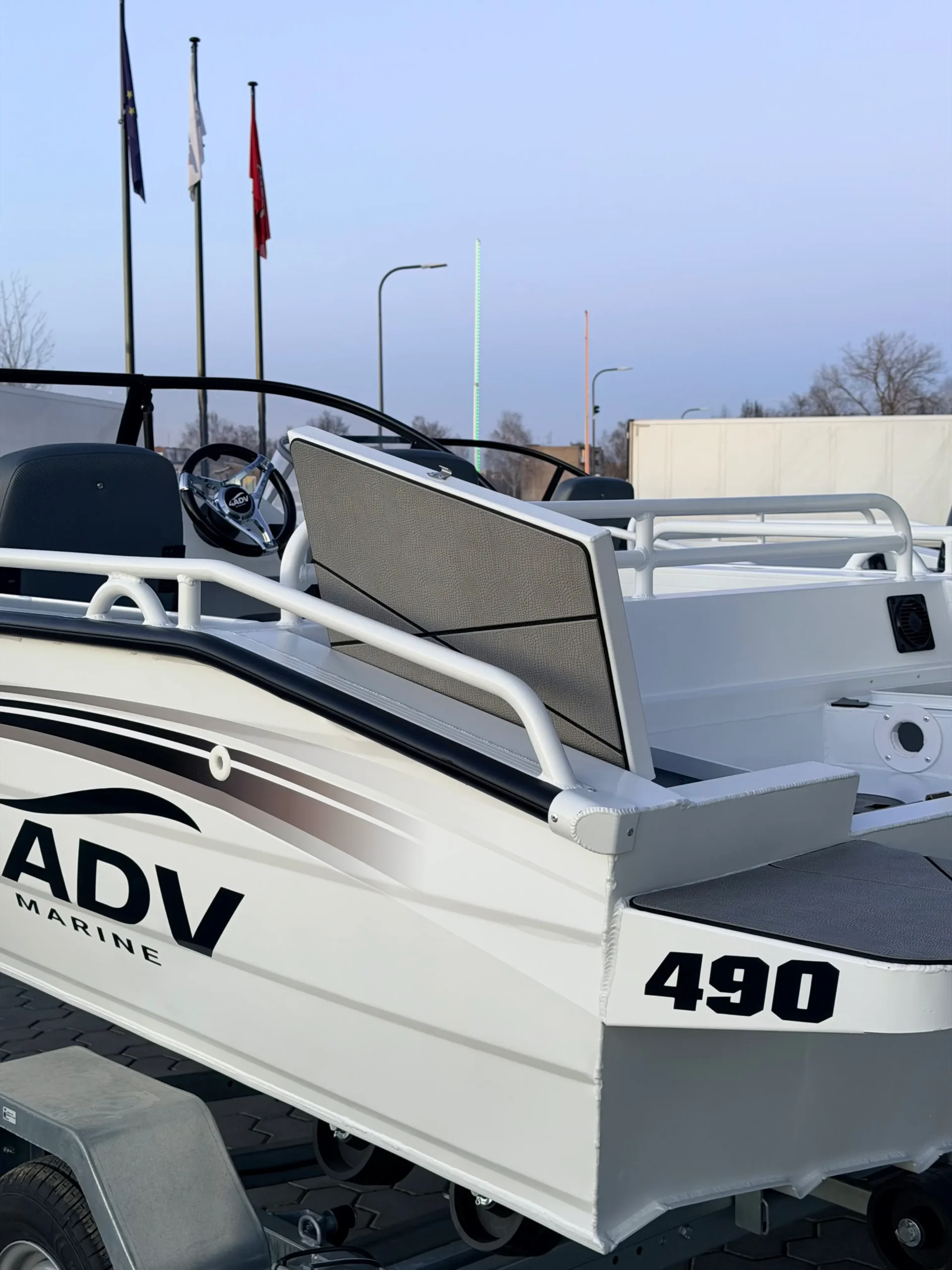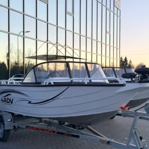 Priekyje aliuminio platforma, kurioje lengvai pritvirtinsite inkaravimosi gervę ar GPS variklį.
