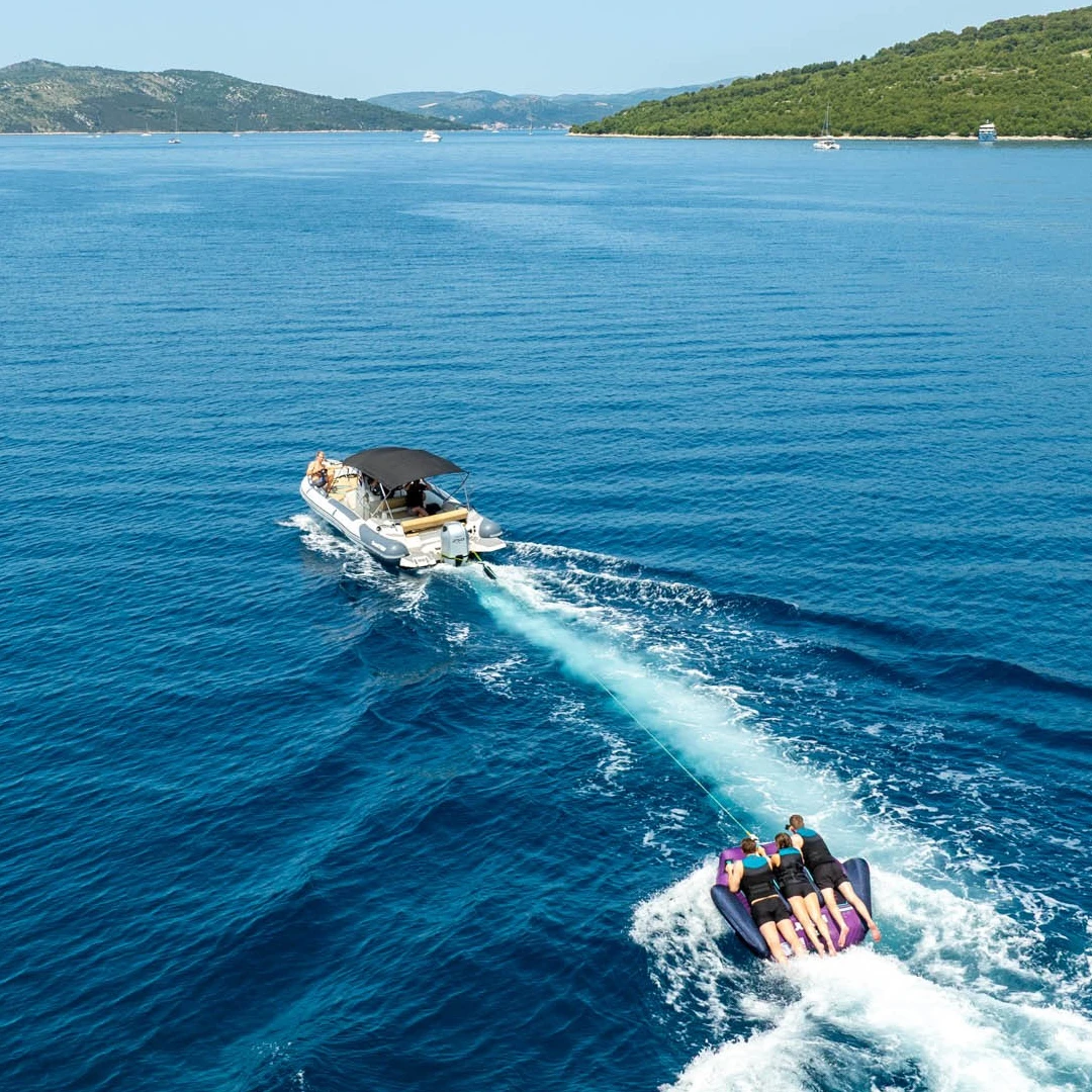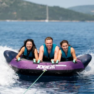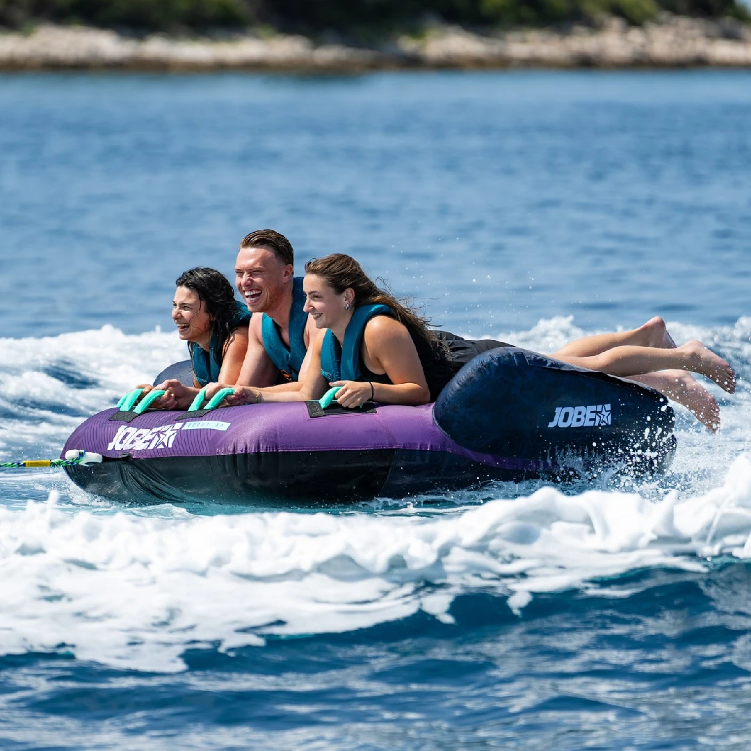 „Jobe Scout Towable 3P“ perima patikrintą dviviečio „Scout“ dizainą ir padidina malonumą. Šis velkamas, talpinantis tris keleivius, sujungia jaudulį ir komfortą bendriems nuotykiams ant vandens. Aerodinaminė forma užtikrina sklandų slydimą ir staigius posūkius, o minkštos neopreno rankenos užtikrina visų saugumą kelionės metu. Patvarus 420 denų nailono užvalkalas ir dvigubos siūlės užtikrina tvirtumą ir ilgalaikį veikimą. Ryškios naujos violetinės spalvos „Scout 3P“ išsiskiria – žaismingas, galingas ir sukurtas nesibaigiančioms pramogoms kartu.